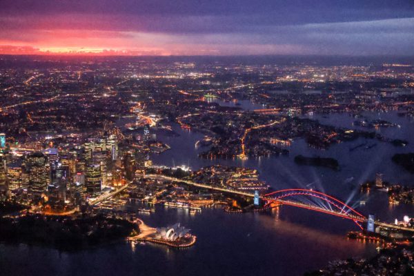 Photo : Destination NSW and Qantas Sydney has commemorated Qantas Airways’ 100-year anniversary by lighting up its iconic